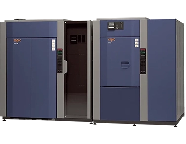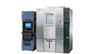 This system evaluates the reliability of semiconductor devices and performs large capacity screenings. With a burn-in board inserted, it has excellent temperature uniformity performance and allowable heat generation load characteristics. It uses an HFC refrigerant with a zero ozone layer depletion coefficient and a damper open/close control system for ventilation control. An electronic expansion valve provides control of the refrigerant flow rate for significant energy savings. In addition, metal molded parts are quality marked and can be recycled as a resource.