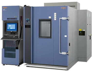 The solar cell module thermal cycling (TC) test system combines a large capacity temperature and humidity chamber, which ensures testing safety and ease of panel setting, and a current load measurement system, which applies an STC peak output current equivalent and controls the entire system, thereby enabling easy thermal cycling (TC) testing.