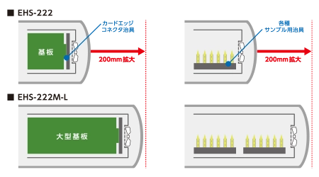 51Lモデル(EHS-222M)から奥行方向に200㎜拡大し、試料信号端子は1000V1A×最大120ピンまで対応が可能。