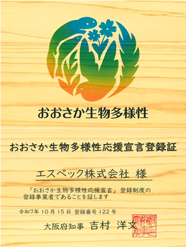 2025年10月、大阪府の「おおさか生物多様性応援宣言」に登録しました。