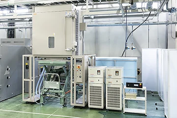 この試験では、冬場に雨や雪で濡れた道路を車両で走行する場合を想定し、高温になったシステム/コンポーネントに冷水がかかる状態を模擬します。