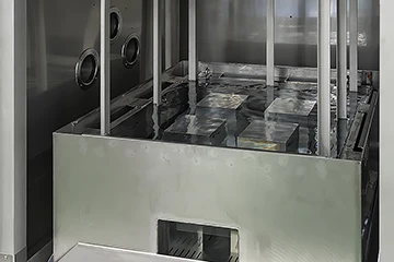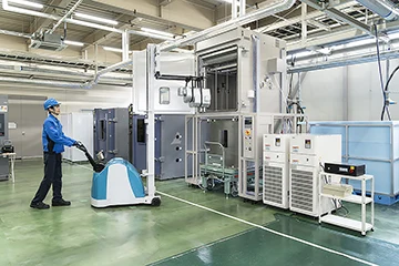 新たに導入した水没試験装置では、これらの行程を自動で行えます。安定した試験プロセスで試験を実施でき、作業者の介在が少なくなることで試験時間の短縮を図ることができます。また、これまで対応できなかった大きさや重量の供試品にも対応することができるようになりました。