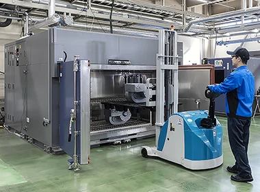 従来器にない大容量を有していますので、今までサイズや重量的に無理があった比較的大きな製品や自動車に使用されるような大型部品(例えば、車載用Li-Ionバッテリーモジュール、電動ターボチャージャー、インタークーラー、ラジエター、車載インバーター)、また大画面化が進む大型フラットパネルディスプレイなどに対しても熱衝撃試験を実施できます。